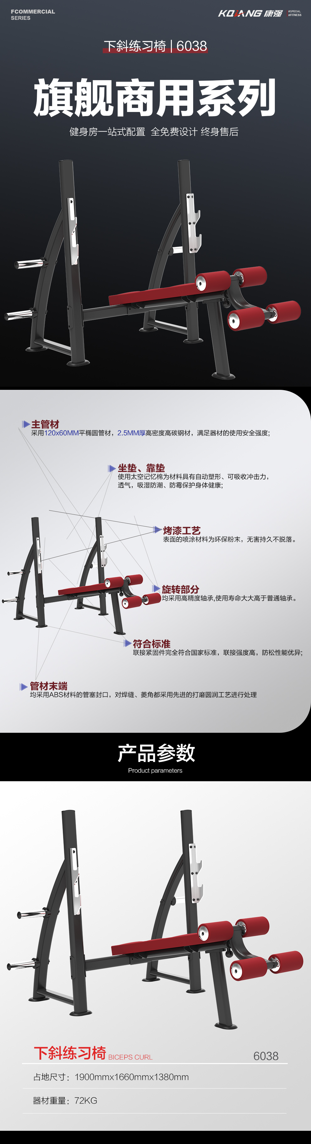 多宝下斜练习椅卧推架商用健身器材健身房团购综合训练器 6038下斜练习椅